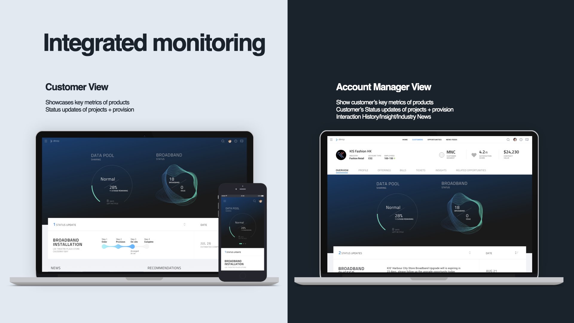 Hero UI translated the vision into interfaces — Customer View and Account Manager View — each designed around a different set of needs.