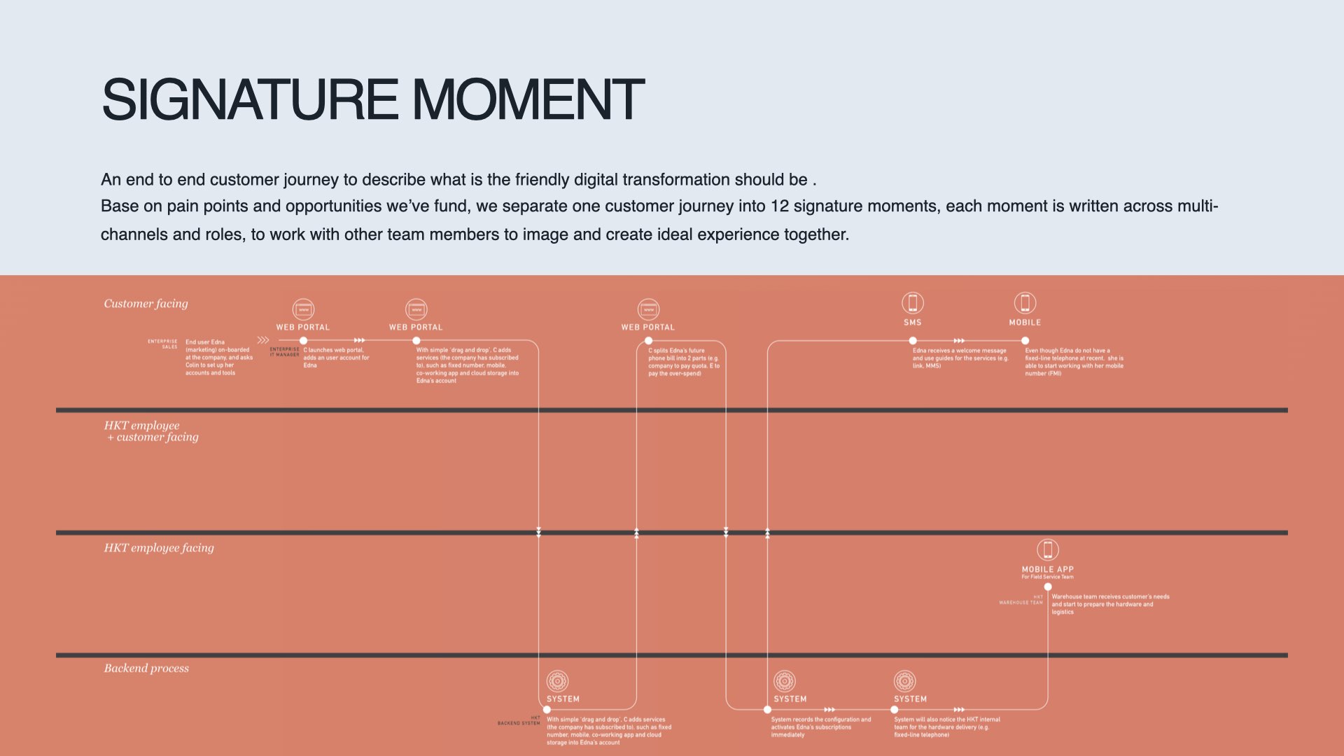 From the full customer journey — Aware → Buy → Use → Pay → Upgrade — we identified 12 Signature Moments: the points where HKT could make the biggest difference.